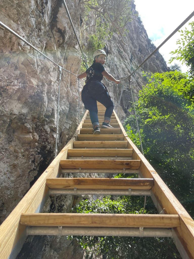 Esta fue la tercera vez que visito la Sima de las Cotorras y que hago el recorrido de rappel, cueva y vía ferrata. Cada vuelta rompo un nuevo miedo, salgo sintiéndome más fuerte, feliz, valiente y hasta rejuvenecida dice mi amigo Paco Mendez, y Pily, ambos gratísima compañía en esta aventura.