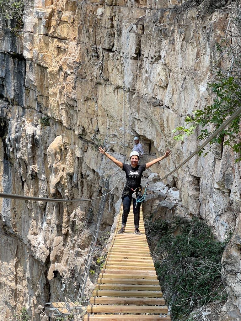 Esta fue la tercera vez que visito la Sima de las Cotorras y que hago el recorrido de rappel, cueva y vía ferrata. Cada vuelta rompo un nuevo miedo, salgo sintiéndome más fuerte, feliz, valiente y hasta rejuvenecida dice mi amigo Paco Mendez, y Pily, ambos gratísima compañía en esta aventura.